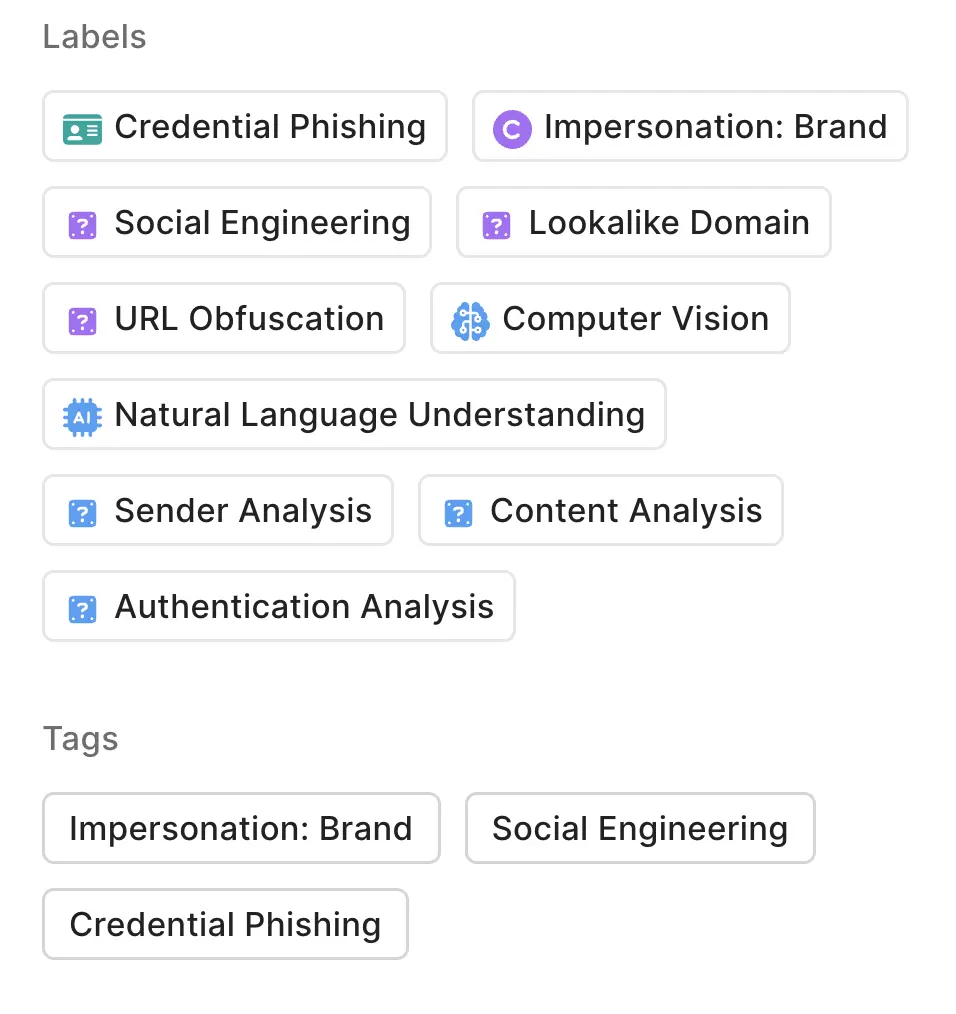 ADÉ labels new coverage by Attack Type, Tactics and Techniques, and Detection Methods. This makes it easy to understand what ADÉ caught, how it caught it, and where it fits in your broader coverage map.