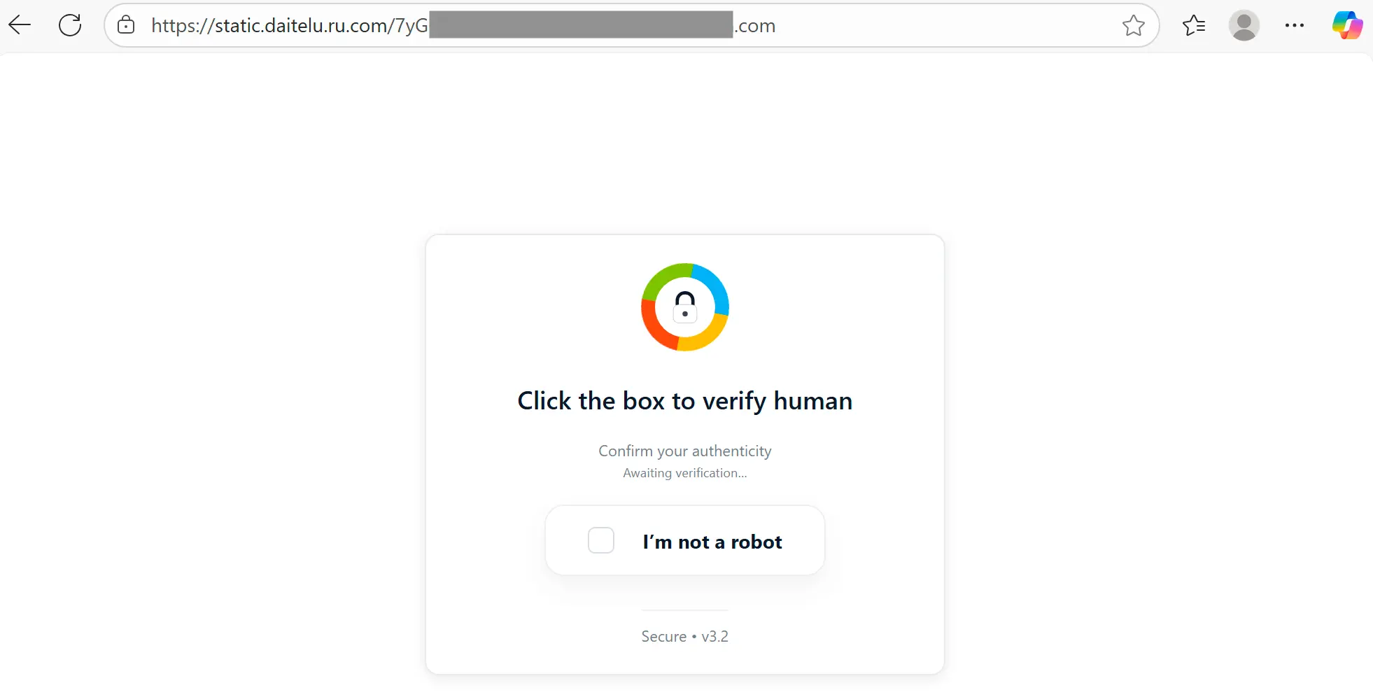 If the target scans the QR, they are taken to a Russian (.ru) website that starts with a fake challenge page, followed up by a fake Outlook page, and finally a fake Microsoft login credential phishing page. The use of a Russian domain to host these pages is another attack indicator.