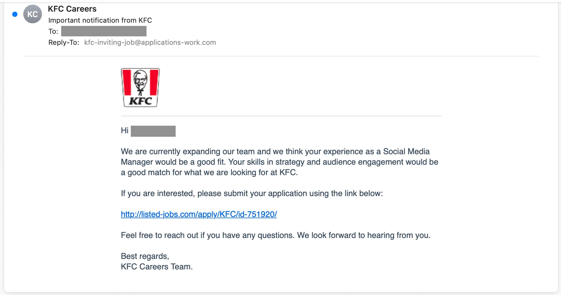 Fake hiring messages impersonating brands like Tesla, KFC, Red Bull, and more