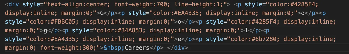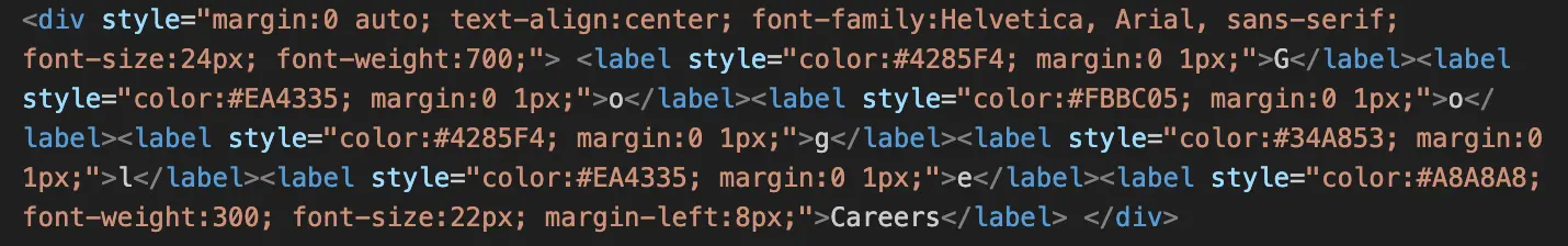We observed an interesting evasion tactic in later attacks. In the cases, the attackers broke up the words “Google Careers” with HTML formatting to evade text scanners.