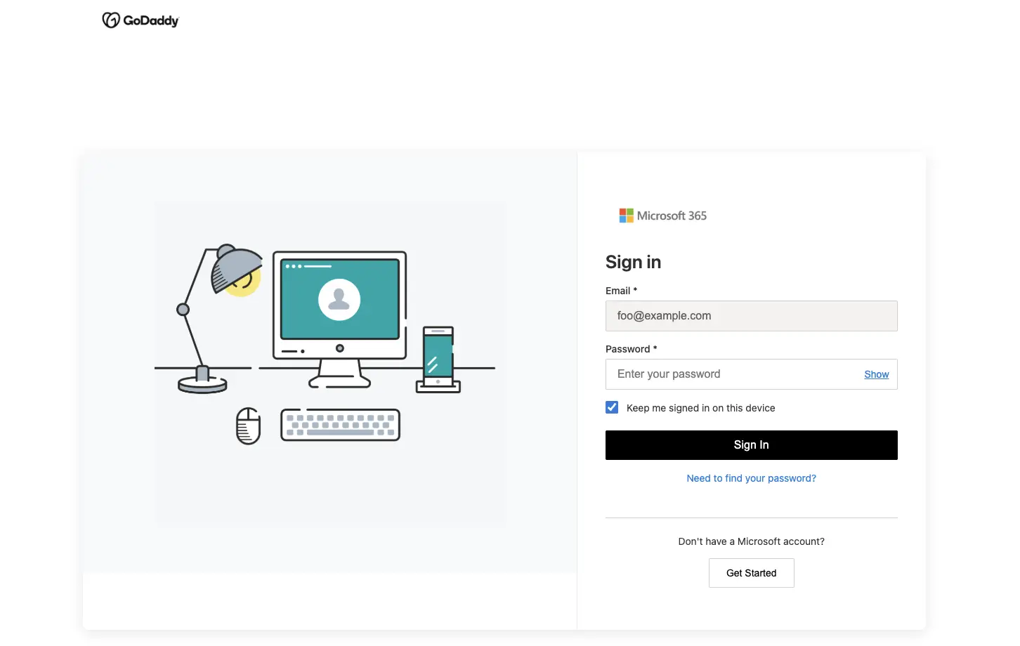 Then they finally land on a credential phishing page that impersonates a Microsoft-powered GoDaddy login page.