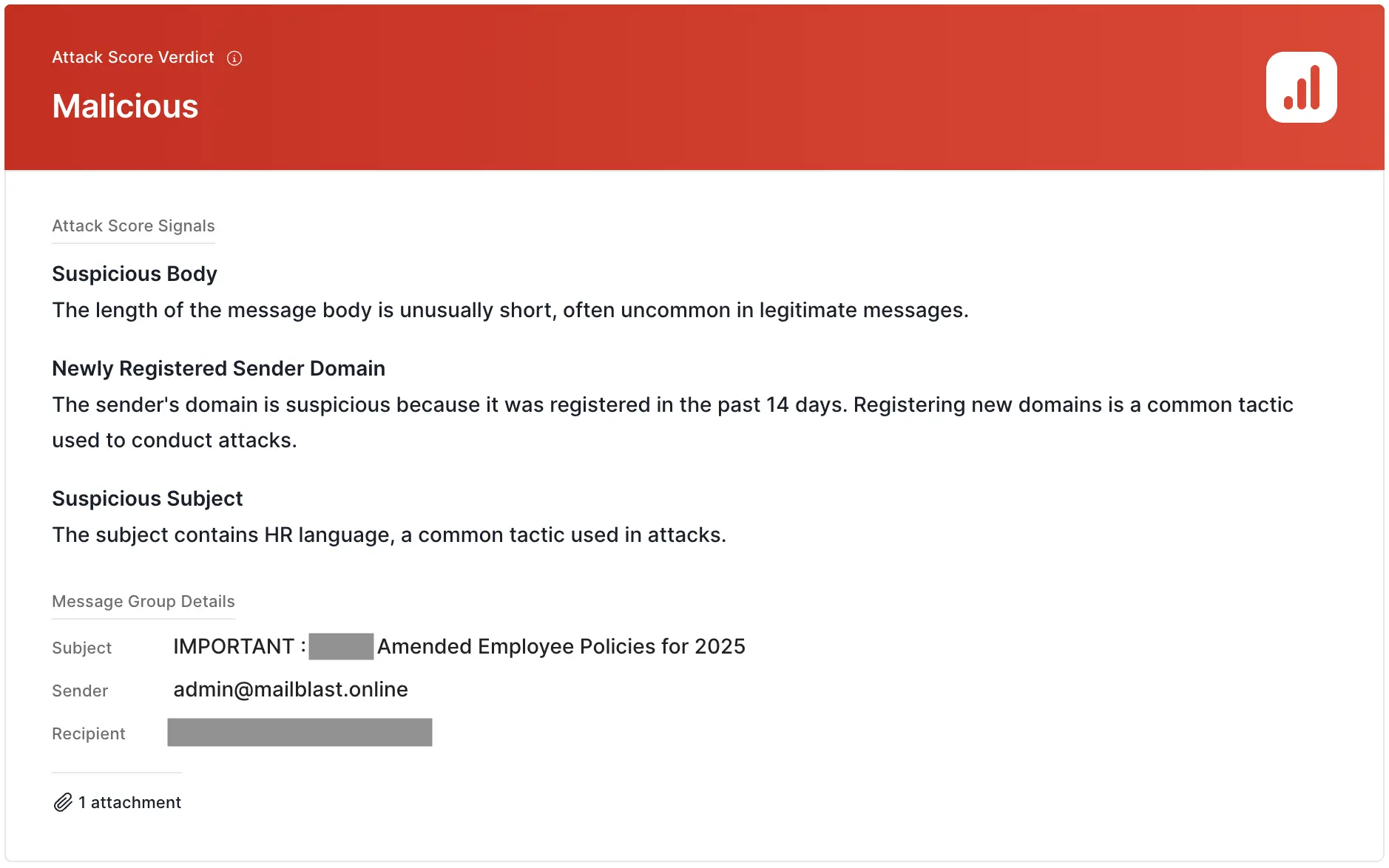 Sublime's AI-powered detection engine prevented this attack. Some of the top signals for this attack were: