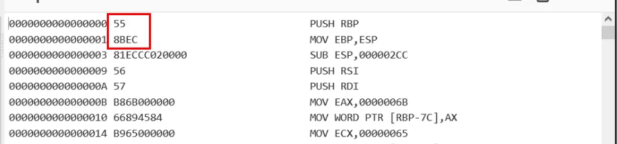 We ran a Disassemble x86 operation to confirm that the hex characters were valid x86 instructions.