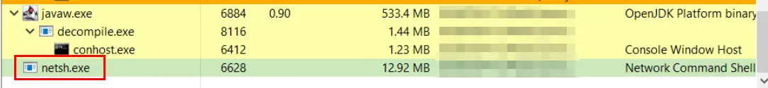 The netsh was created without any command line parameters, which is unusual and suspicious. So we decided to investigate the process further.