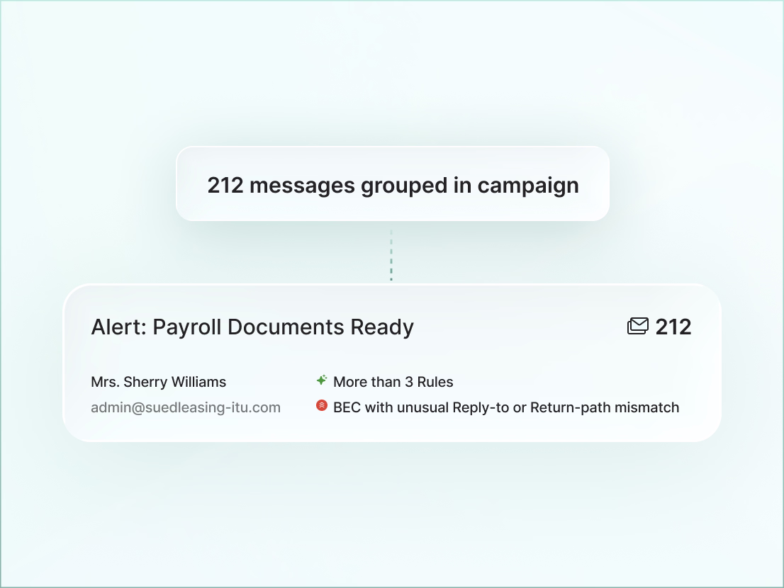 Sublime automatically groups related messages so analysts can investigate once and remediate across all affected mailboxes.